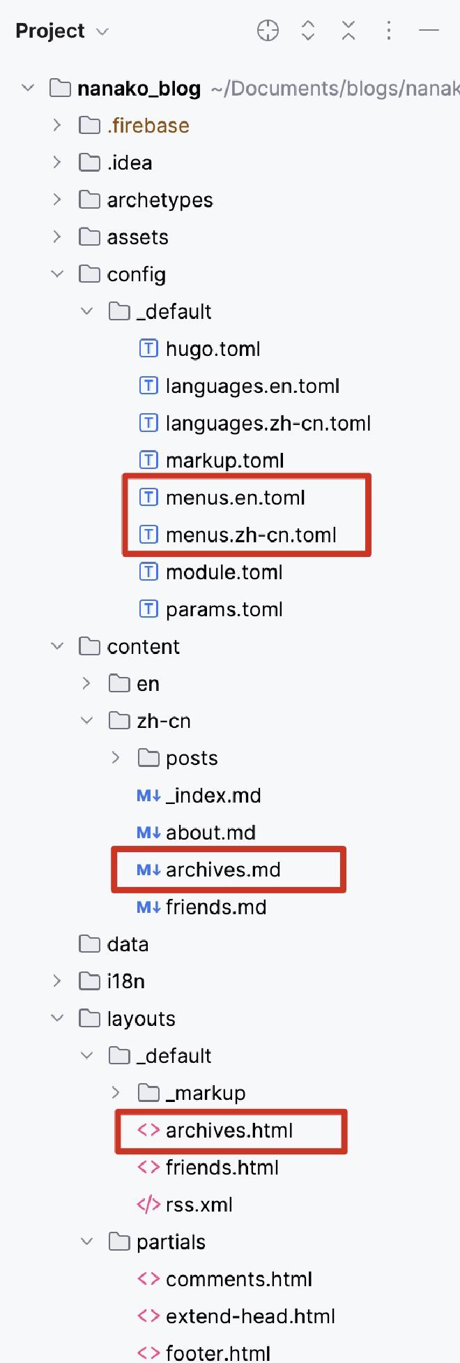 最后在顶部导航栏加入归档页的按钮,在config/_default/menus.[language].toml文件中加入以下内容: