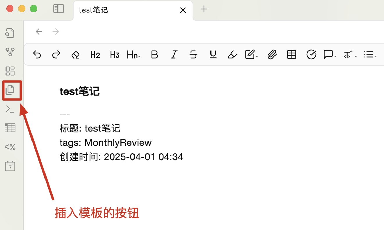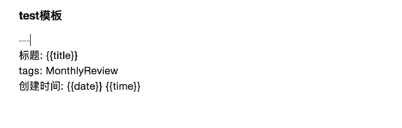- 创建一个新笔记,然后插入模板,就会得到如图所示的文字: